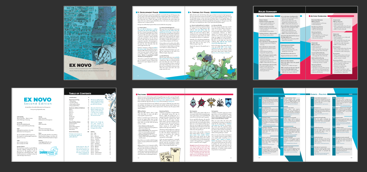 Thanks to the successful crowdfunding campaign, all previous owners of Ex Novo now have access to the full-fledged second edition. Improved rules, new layout, fresh art and lots of extras! You can simply redownload the game to get the latest version of the files. The cover and screenshots on the page have been updated accordingly and if you're curious about the game's new look: